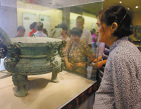 5月18日,观众在省博物馆欣赏中国国家博物馆典藏精品。当天是国际博物馆日,今年的主题为“博物馆与旅游”。 本报记者 古月 摄