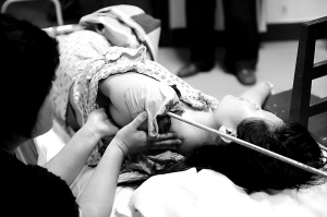 记者接到报料赶到琼海市人民医院看到,惨遭横祸的符小姐正侧身躺在病床上,一条一尺多长的钢条穿在臂膀中,肩膀下约10厘米处被钢条一端撬得皮肉高高隆起(上图,蒙钟德 摄)。符小姐表情十分痛苦。据符小姐的姐姐介绍,符小姐当时是替她到琼海市实验小学接孩子,不料途中惨遭横祸。