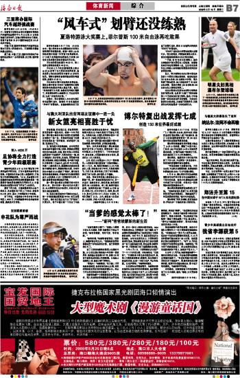 海南日报 体育新闻 015 2009-05-191 2009年05月19日 星期二