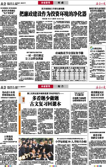 海南日报 时 政 002 2009-05-191 2009年05月19日 星期二