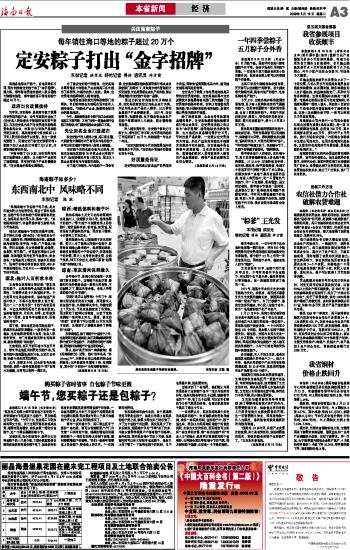定安粽子打出“金字招牌”