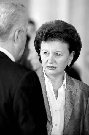 5月20日,在摩尔多瓦首都基希讷乌,摩看守总理齐奈达·格雷恰尼(右)与同事交谈。当天,摩尔多瓦议会举行总统选举。由于遭到反对党的集体抵制,摩议会未能选出新总统。该国议会将于28日举行总统选举第二轮投票。新华社/法新