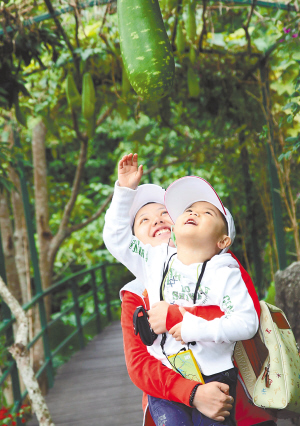 近期,我省各大景区游客不断。图为一对母子游览呀诺达景区。 本报记者 程范淦 通讯员 陈文武 摄