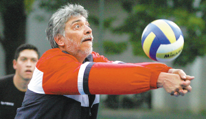 21日,在巴拉圭亚松森举行的一场排球赛中,总统卢戈披挂上阵,与前国家队球员同场竞技。 新华社发