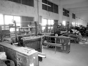 | 正规塑料袋生产企业工厂车间内已停工的多条布满灰尘的生产线。 本报记者 程娇 摄 |