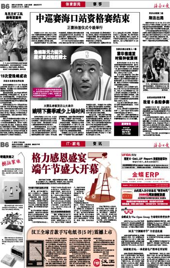 海南日报 体育新闻 014 2009-05-221 2009年05月22日 星期五