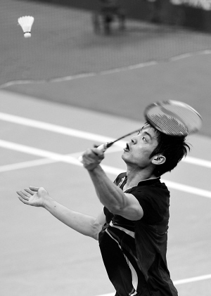 23日,在全运会羽毛球预赛男子团体赛中,林丹以0:2不敌福建选手谌龙。 新华社发