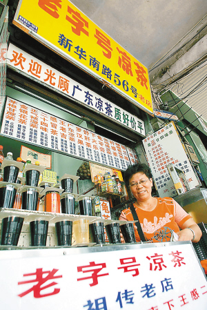 老板娘告诉记者,凉茶店有50年的历史,是母亲传下来的,在她手里已经营30多年。她还是小孩子的时候,就跟着母亲在这里卖凉茶。“当时的凉茶用玻璃杯装、一分钱一杯。”老板娘说。