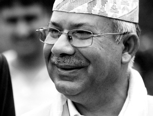 5月23日,在尼泊尔加德满都,尼泊尔共产党(联合马列)高级领导人马达夫·库马尔·内帕尔在获得总理提名后露出笑容。当天,马达夫·库马尔·内帕尔当选尼泊尔联邦民主共和国总理。 新华社/路透