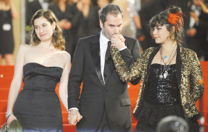 | 法国导演格扎维埃·詹诺利(中)与女演员埃玛纽埃勒·德沃(左)和索科亮相戛纳电影节,为格扎维埃·詹诺利的正式竞赛作品《起源》造势。 新华社发 |