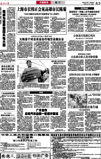 海南日报 中国新闻 003 2009-05-241 2009年05月24日 星期日
