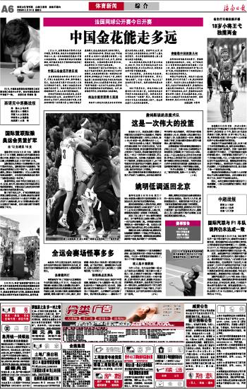 海南日报 体育新闻 006 2009-05-241 2009年05月24日 星期日