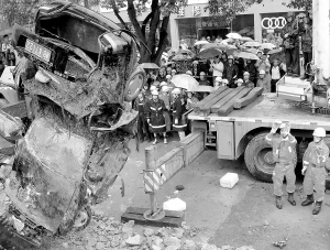 那一刻,株洲市红旗路高架桥一截160多米长、16米宽的待拆桥面,似一条张牙舞爪的狂龙,咆哮着,从8米高空直扑向地面的车流和人群;8座桥墩也如一张张邪恶的多米诺骨牌,嘶叫着,由远而近地吞噬着一个个鲜活的生命……顷刻间,湘江呜咽,阴阳两隔肠已断;刹那时,南岳含悲,泪飞顿作雨倾盆。