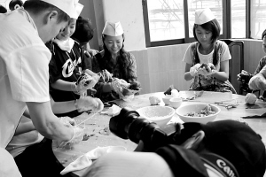 | 5月23日,南海网友在定安体验包粽子 本报记者 洪宝光 摄 |