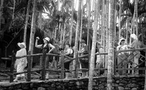 5月22日,保亭甘什岭槟榔谷海南原住民文化游览区,来自乌克兰的旅客在享受槟榔林里的黎苗风情。今年以来,到这里的中外游客最高时一天达5000多人。 本报记者 李幸璜 摄