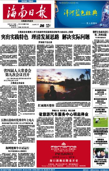 海南日报 头版 001 2009-05-261 2009年05月26日 星期二
