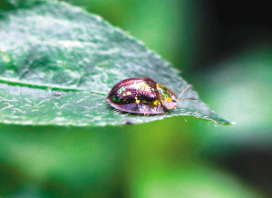 ③栖息在植物叶片上的龟甲虫。
