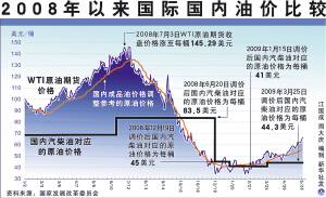 今年以来,国际油价涨幅很大。1至5月份,国际油价从最低每桶37美元一度上涨到最高每桶66美元,幅度变化相当大。特别是5月份,是近10年来单月涨幅最高的一个月份。