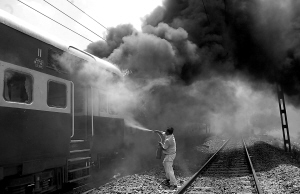 6月1日,在印度东部城市巴特那附近,一列客运列车燃起大火。据报道,愤怒的村民为抗议火车在当地偏远车站不停靠,点燃了两列火车和一个火车站。 新华社/路透