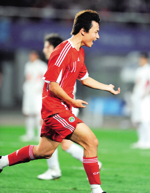 6月1日,中国队在秦皇岛与伊朗队进行一场友谊赛。最终中国队1:0战胜了对手。图为郜林庆祝进球。 新华社发