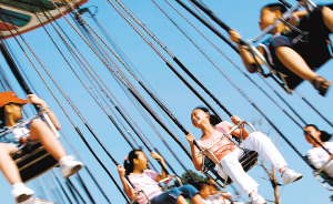 6月1日,在海口市白沙门儿童乐园,几名孩子坐上摇头飞椅,兴奋地呼喊着。 本报记者 苏晓杰 摄