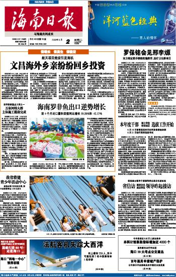 海南日报 头版 001 2009-06-021 2009年06月02日 星期二