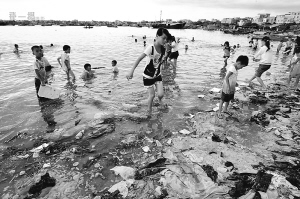 看到临高县新盈渔港的照片,令人意外的是看到了一个垃圾遍地的渔村,孩子们在肮脏浑浊的海边洗龙水,我列出能表达内心的词语:震撼、触目惊心、恶心、痛心!虽然只是一张张照片,但一样挑战我的视觉,震撼我的心灵,这不是渔港,这是垃圾堆场!