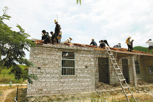 昨天上午,记者在白查新村采访时看到,村民符那孟正在组织人员给自家的三间新房上瓦片。