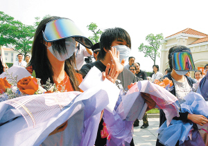 6月3日,三名康复出院的患者与医务人员挥手告别。当日,上海市第二、三、四例输入性甲型H1N1流感患者,经上海市公共卫生临床中心的精心治疗达到出院标准。 新华社发