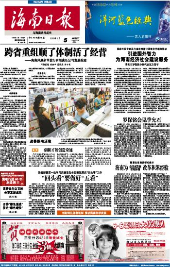 海南日报 头版 001 2009-06-051 2009年06月05日 星期五