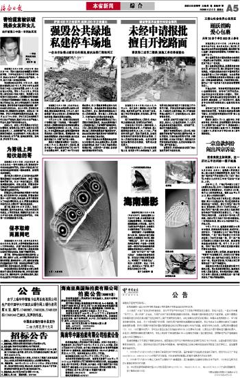 海南日报 本省新闻 005 2009-06-051 2009年06月05日 星期五