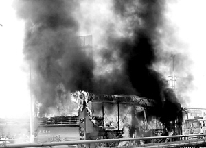 8时许,行驶至北三环川陕立交桥下桥处时,这辆9路公交车突然起火。顿时,浓烟滚滚,大火熊熊而起,惨叫声、哭喊声、呼救声混成一片。
