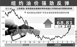 新华社新加坡6月5日电 由于投资者预期世界经济复苏将带动原油需求增长,纽约商品交易所基准原油期货价格5日逼近每桶70美元,再次显示国际原油价格呈现强劲上涨势头。