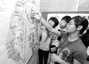 | 6月6日,来自台湾宜兰的小朋友陈亮妤(前)在两岸城市青少年创意族谱联展上向福州小朋友介绍她的祖辈从福建迁居台湾。当日,2009年两岸城市青少年创意族谱联展在福州开幕。海峡两岸城市青少年欢聚一堂,溯根源,叙亲情,话未来。新华社记者 张国俊 摄 |