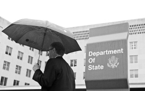 6月5日,一名男子离开位于华盛顿的美国国务院办公大楼。美国司法部当日发表声明说,现年72岁的美国国务院前官员沃尔特·肯德尔·迈尔斯和妻子涉嫌为古巴从事间谍工作近30年,现已遭到逮捕和起诉。 新华社/路透