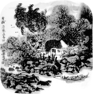 画家的扇面山水画空灵飘逸,清新朴实,南北兼得。无论在海南都市的清晨薄雾中,还是乡寨的日暮西山里,品茗、赏花、牧童、泛舟、垂钓、劳作,咫尺之间,描画出一幅又一幅现代版的海南世外桃源景观。曾祥熙的《开在群花最上头》、邓子芳的《山月》、陈茂叶的《南果飘香》、吴地林的《遨游》、蔡於良的《清趣》、游桂光的《椰风树影一溪香》、阮江华的《绿水青山映家园》等,从众多扇面画作中,不难看出,我省的画家们运用手中的画笔,正在努力将海南打造成一个风景优雅的山水庄园。