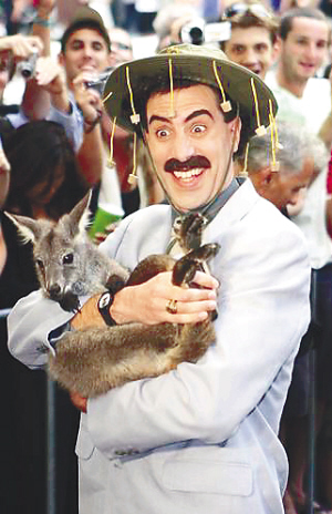 | 萨沙·科恩2006年在澳大利亚抱袋鼠出席电影《波拉特》首映式 |