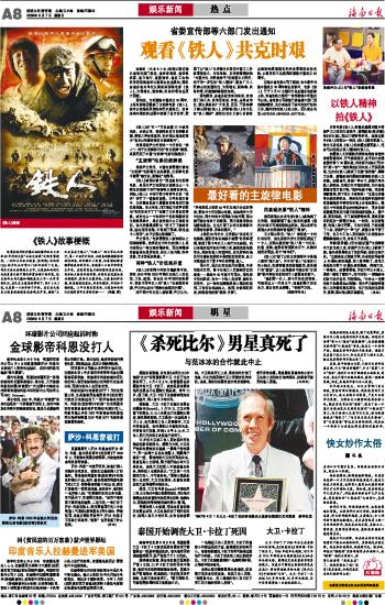海南日报 娱乐新闻 008 2009-06-071 2009年06月07日 星期日