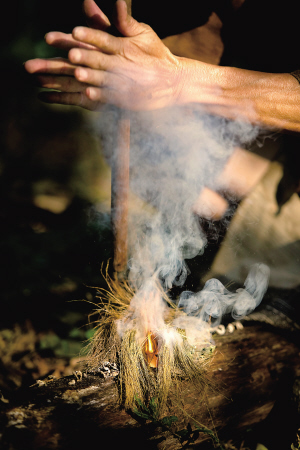 | 保亭非遗:钻木取火。 海南日报记者 李幸璜 摄 |
