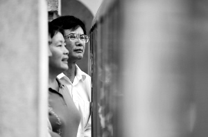 ↑6月7日,海南中学考点,不少学生家长守候在大门口。 本报记者 王凯 摄