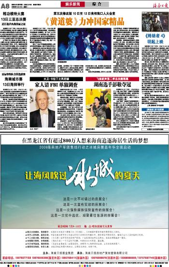 海南日报 娱乐新闻 综 合 008 2009-06-081 2009年06月08日 星期一