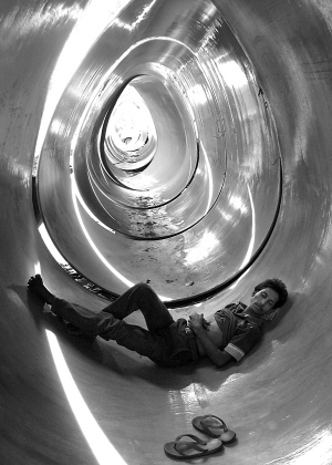 | →6月8日,在印度西孟加拉邦首府加尔各答,一名建筑工人在尚未完工的管道中休息纳凉。印度连日来持续高温,部分地区最高温度高达44摄氏度。 新华社/法新 |
