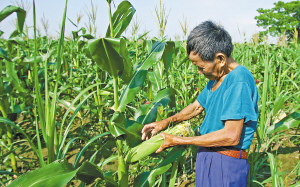 甘蔗地里种玉米,一块地里两份收获。昌江黎族自治县海尾镇大安村农民尝到科技带来的甜头。6月8日,由省农业部门在昌江县海尾镇指导实施的200多亩甘蔗套种玉米技术示范项目基地,农民正分批采摘玉米销售,实施套种后每亩地比原来单种甘蔗增收近1000元。 蔗田间套种作物是一项立体种植技术,不但提高土地利用率,而且对促进甘蔗产业优化,调整农业产业种植结构,增加农民收入具有积极意义。 图为海尾镇大安村农民陆兴隆在自家甘蔗地里收获成熟的玉米。 本报记者 李英挺 特约记者 曾高文 通讯员 符朗 摄影报道