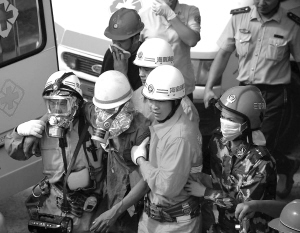 | 被困工人成功获救瞬间。 本报记者 程范淦 摄 |