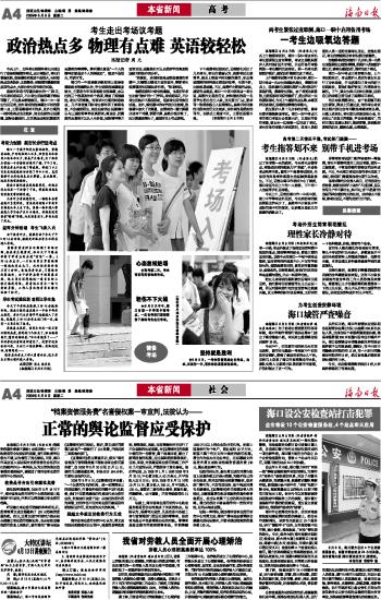 海南日报 本省新闻 高 考 004 2009-06-091 2009年06月09日 星期二