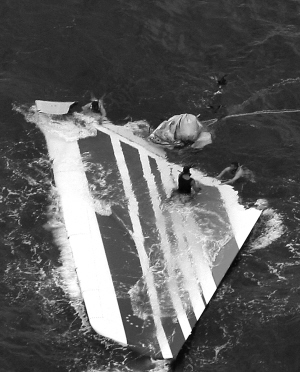 | 潜水员在大西洋找到失事法航飞机的尾翼部件。 新华社/法新 |