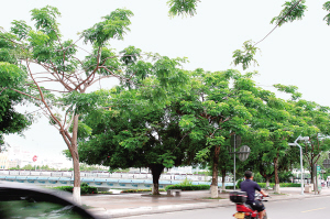 大树也害羞?说来也许有人会不相信,但在三亚市河东路上,确实有着这么一些大树。白天张开翠绿的叶子吸收阳光雨露,而阴天或者晚上,树儿却害羞地把叶子合起来,静静地“睡着大觉”。这种树的叶子与含羞草的叶子极为相似,不过它的叶子比含羞草的叶子大许多,而且是长在高大的树上。