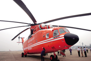 6月9日,受命参与武隆山体垮塌抢险救援的米26大型运输直升机抵达重庆机场。据了解,目前国内载重量最大的米-26重型直升机将主要负责吊运大型机械设备前往山体垮塌现场。 新华社发
