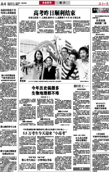 海南日报 本省新闻 综 合 004 2009-06-101 2009年06月10日 星期三