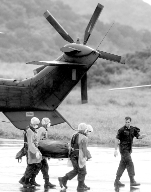 法航失事客机后续 已打捞上41具遗体 6月9日,在巴西的费尔南多-迪诺罗尼亚岛一个基地,巴西空军士兵将法航失事客机遇难者遗体抬下飞机。巴西海军和空军当晚在巴西东北部城市累西腓举行新闻发布会,宣布到目前为止搜救队共打捞上来41具法航失事客机遇难者遗体。 新华社/路透
